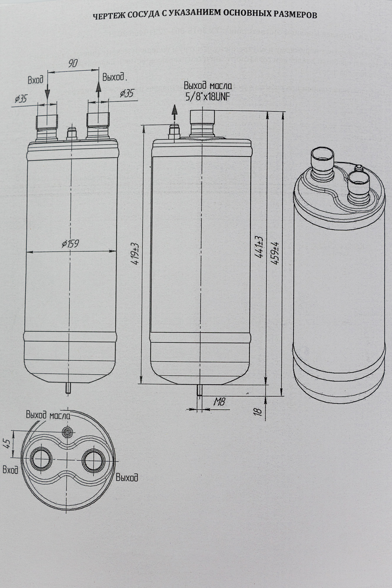 Соединительный размер: 1 3/8". Диаметр: 159 мм. Высота: 443 мм. Объем: 7 л.