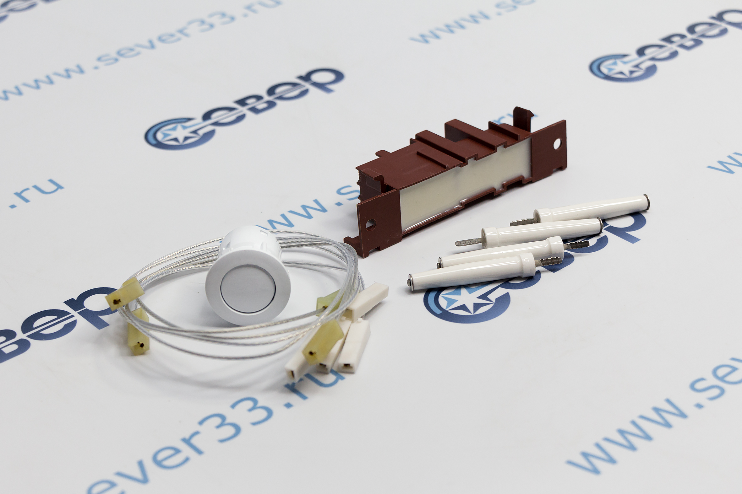 Комплект электророзжига предназначен для ремонта газовых плит "Дарина" мод. GM441-007...010, GM441-014...015, GM441-018...024, GM441-107...110, GM441-114...115, GM441-118...124, GM442-008, GM442-010, GM442-014, GM442-018, GM442-020, GM442-108, GM442-110, GM442-114, GM442-120, GM442-123, KM441-008...010, KM441-014...015, KM441-018, KM441-020...022, KM441-024, KM441-110, KM441-114...115, KM441-118, KM441-120...124, KM441-303...314, KM441-323...334, KM441-353...364, KM441-373...384.