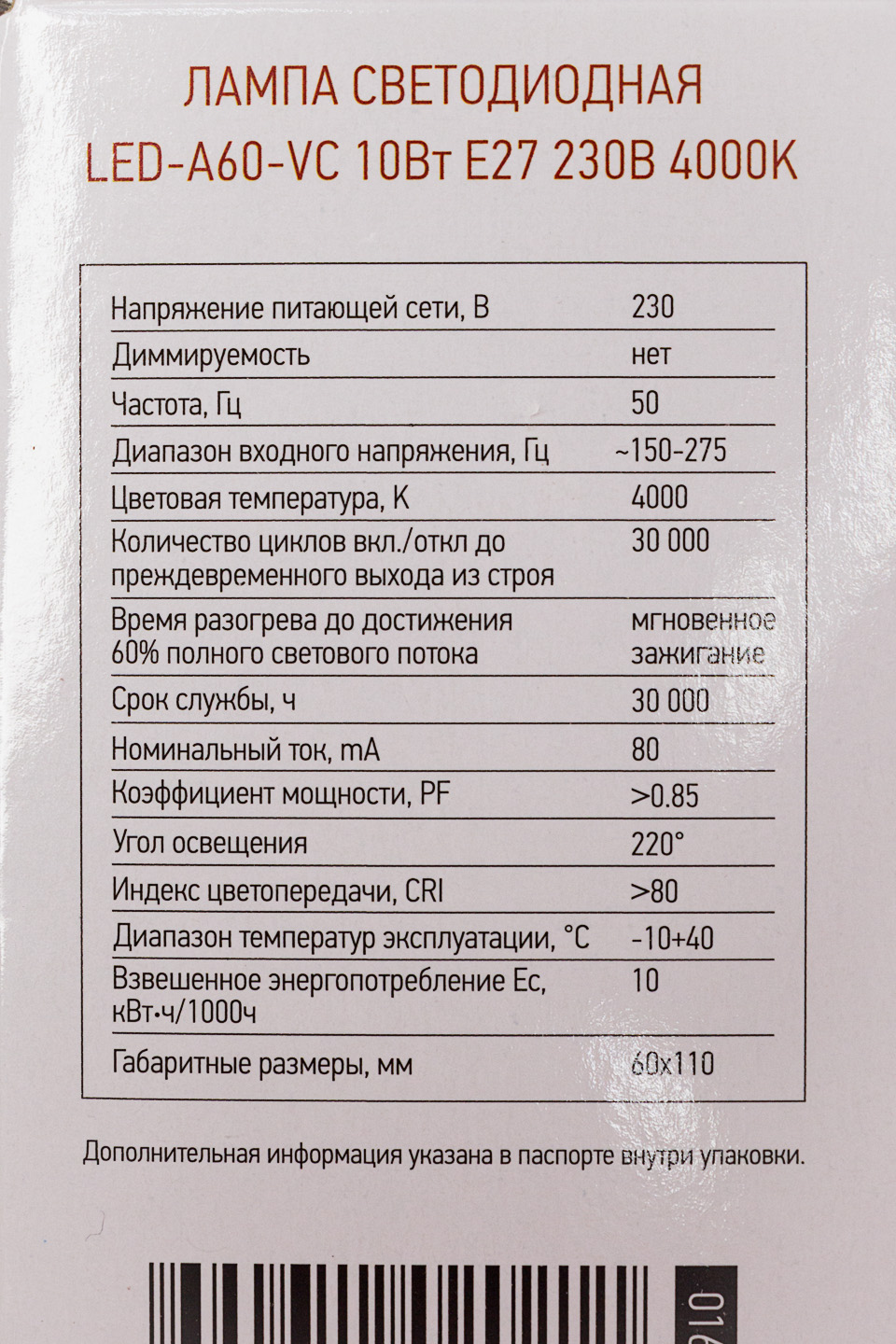 —Лампа светодиодная IN HOME A60 10Вт 230В 4000К Е27 900Лм