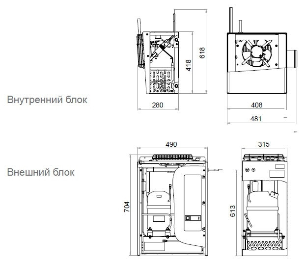 Габаритные размеры внутреннего блока, мм
